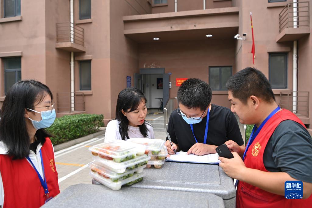 8月9日,工作人員在親和儒園安置點內清點盒飯數量。