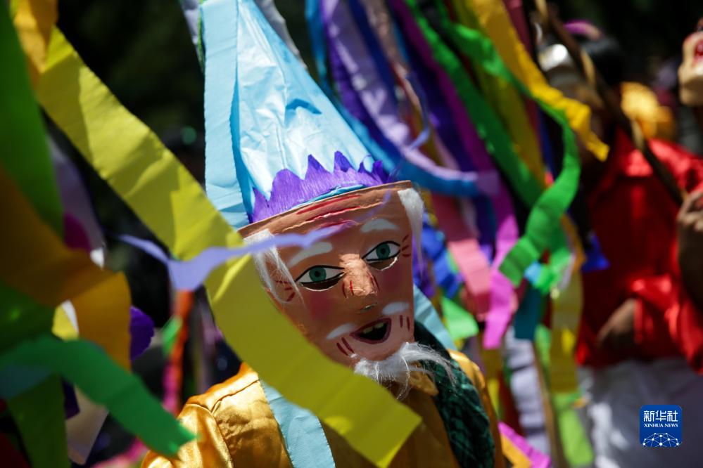 8月9日,在墨西哥首都墨西哥城,演員身著傳統服飾參加世界土著人民國際日慶祝活動。