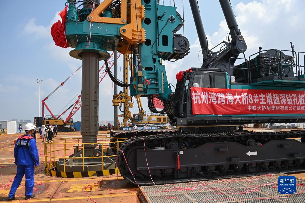 杭州灣跨海鐵路橋全長29.2公里,包括北、中、南3座航道橋和跨大堤、海中、淺灘區引橋,屬超長高速鐵路橋梁集群工程。此次中鐵大橋局施工的北航道橋8號主塔墩鉆孔樁率先開鉆。