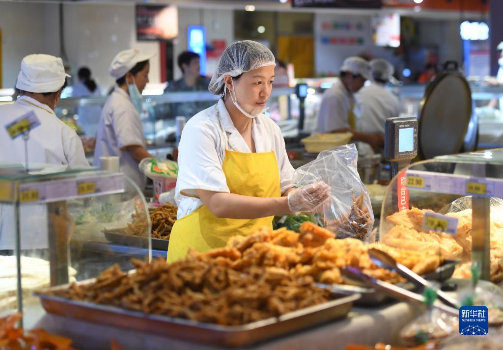 8月10日,涿州市惠友超市鉆石廣場(chǎng)店工作人員在為顧客打包食品。