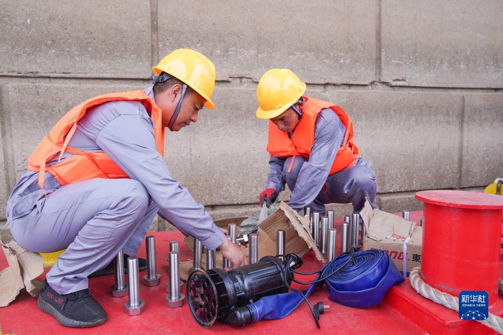 8月10日,中國鐵路上海局集團有限公司工作人員對南京長江大橋橋墩防撞設施進行安裝。