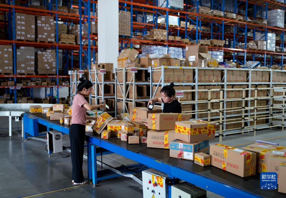 最近,在跨境電子商務活躍的浙江省金華市金義綜合保稅區,工作人員忙著分揀、打包發往各地的包裹,現場一派忙碌的景象。據金華海關統計,今年1至7月,金義綜合保稅區網購保稅進出口包裹約1555萬票,總貨值約46億元,其中進口貨值同比增長19%。