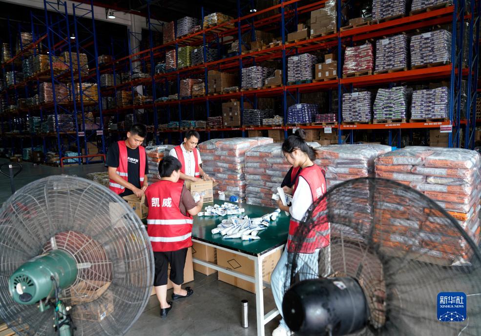 8月10日,浙江省金華市金義綜合保稅區一倉庫內,工作人員在發貨前核驗商品。