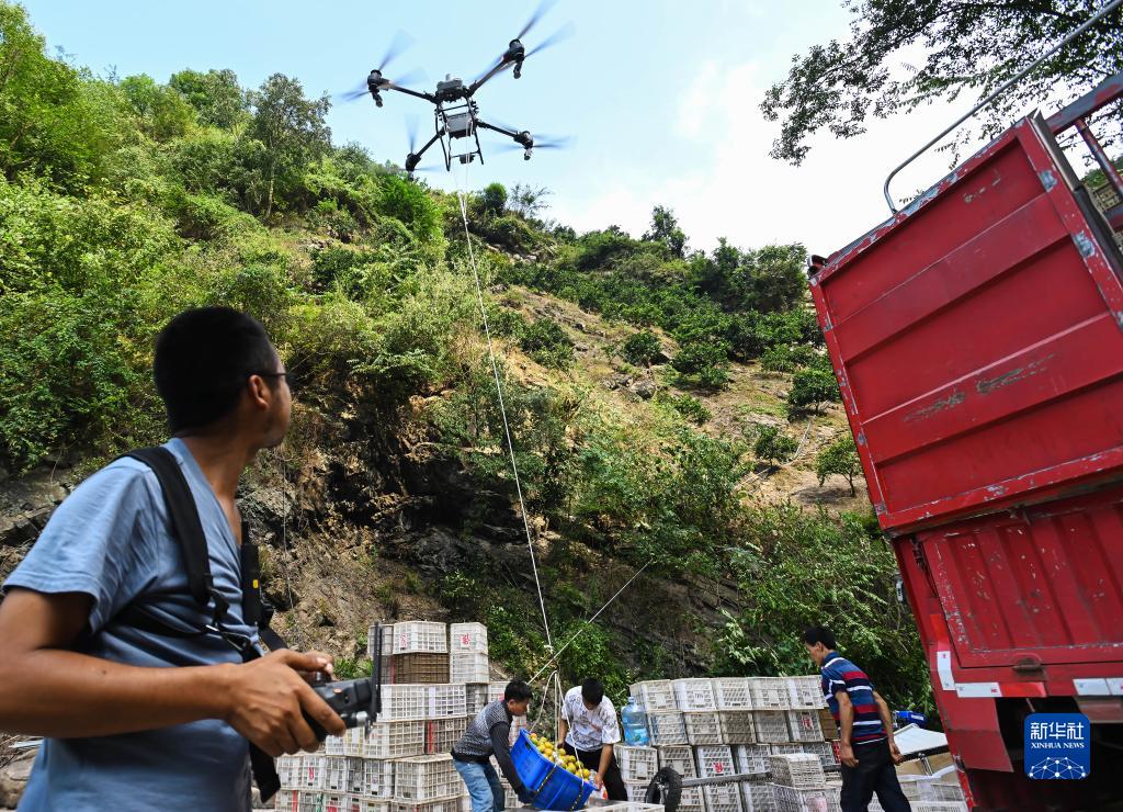 長期以來,該縣從果園到公路主干道的柑橘轉運主要靠人力,轉運效率低、成本高。近年來,該縣根據山區特點,探索安裝果園軌道運輸機、架設空中索道、使用無人機等方式,提升柑橘轉運效率,助力果農增收。