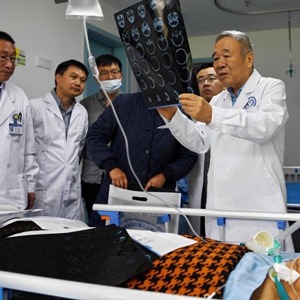 8月10日,中國科學院院士、首都醫科大學附屬北京天壇醫院神經外科學中心主任醫師趙繼宗(后右一)在西藏自治區第二人民醫院為患者會診。