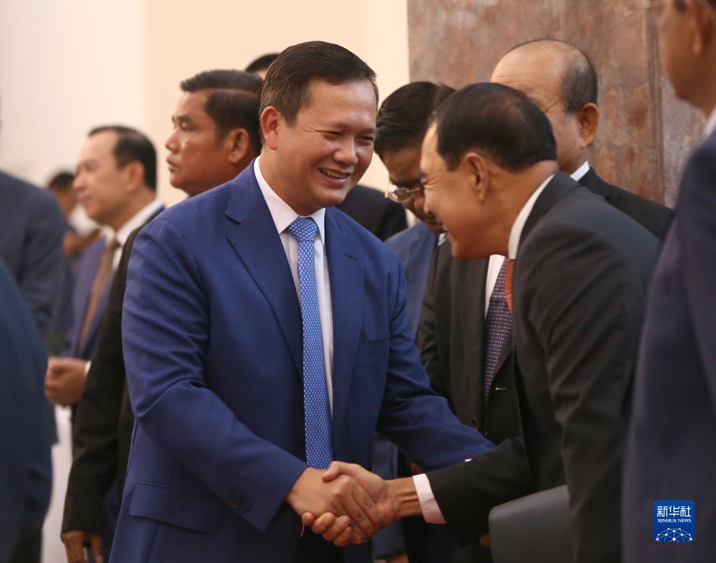 8月10日,柬埔寨候任首相洪瑪奈(左)在柬埔寨首都金邊參加政務(wù)活動。