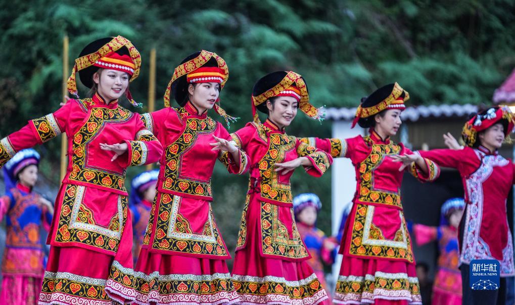 演員在威寧彝族回族苗族自治縣火把節活動上表演撒麻舞(8月10日攝)。