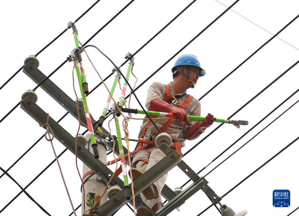 8月11日,邯鄲供電公司搶修人員在涿州市碼頭鎮向五村搶修電力設施。