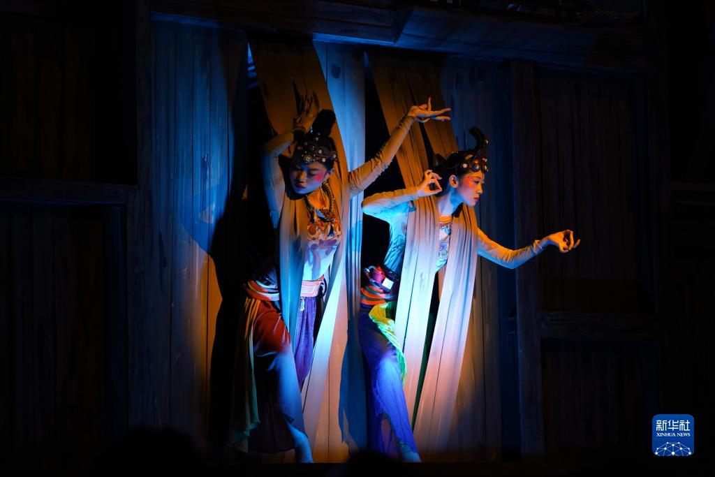 今年以來,脫胎于敦煌文化的洞窟沉浸式體驗劇《樂動敦煌》、室內情景體驗劇《又見敦煌》、沙漠實景演出《敦煌盛典》和中國殘疾人藝術團情景音畫劇《千手千眼》四場劇目在絲路名城甘肅敦煌同步上演,劇目將敦煌歷史底蘊、服飾文化、樂舞文化等生動融合,為游客呈現(xiàn)出精彩絕倫的敦煌文化視覺盛宴,深受中外游客喜愛。截至8月10日,四大劇目今年已累計演出1175場次,觀看游客突破66萬人次。其中,《又見敦煌》從敦煌悠久的歷史文化中選取典型場景、線索人物,串起劇情的故事脈絡,采用“流線式”空間體驗方式演出,讓觀眾在演出中步行“穿越”藏經(jīng)洞、莫高窟以及絲綢之路,身臨其境感受敦煌文化和絲路文化。