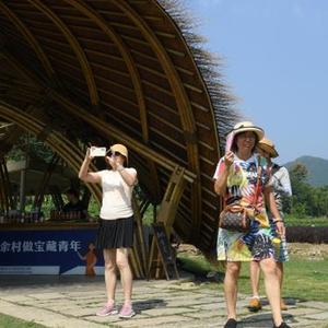 8月11日拍攝的余村未來圖書館,該建筑主要通過鋪設在屋頂上的光伏發(fā)電系統(tǒng)和“光伏樹”供電(無人機照片)。
