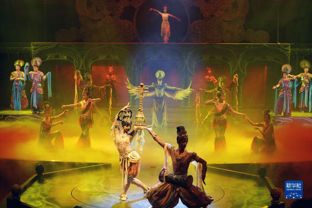 今年以來,脫胎于敦煌文化的洞窟沉浸式體驗劇《樂動敦煌》、室內情景體驗劇《又見敦煌》、沙漠實景演出《敦煌盛典》和中國殘疾人藝術團情景音畫劇《千手千眼》四場劇目在絲路名城甘肅敦煌同步上演,劇目將敦煌歷史底蘊、服飾文化、樂舞文化等生動融合,為游客呈現出精彩絕倫的敦煌文化視覺盛宴,深受中外游客喜愛。截至8月10日,四大劇目今年已累計演出1175場次,觀看游客突破66萬人次。其中,《樂動敦煌》演出借助洞窟式實景移動舞臺和全息投影等技術,還原了敦煌壁畫中的樂舞盛景,講述了西域少年白歆苦苦追尋并最終在敦煌樂舞壁畫中領略到音樂真諦的故事,觀眾在可游走、互動的沉浸式洞窟劇場內,零距離感受敦煌藝術中詩、舞、音、畫的璀璨繁盛。