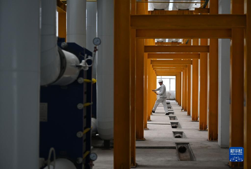 8月10日,工人在中國能建承建的張掖經(jīng)開區(qū)零碳熱源廠施工。