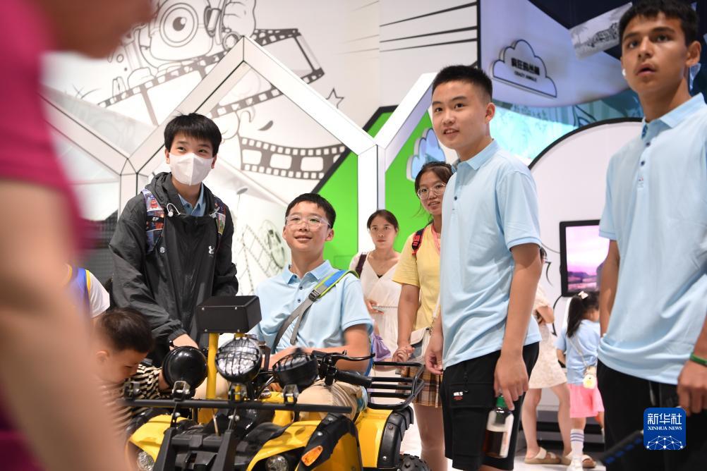 8月10日,夏令營學生在河南省科技館新館參觀體驗。