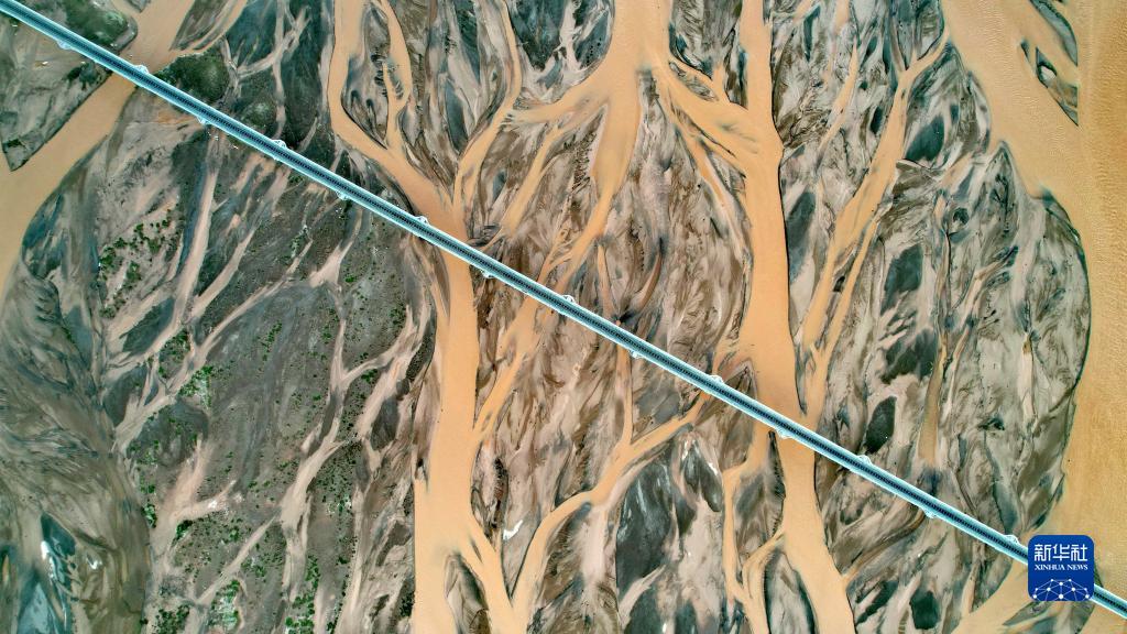 青藏鐵路跨過沱沱河辮狀河道(7月26日攝,無人機照片)。