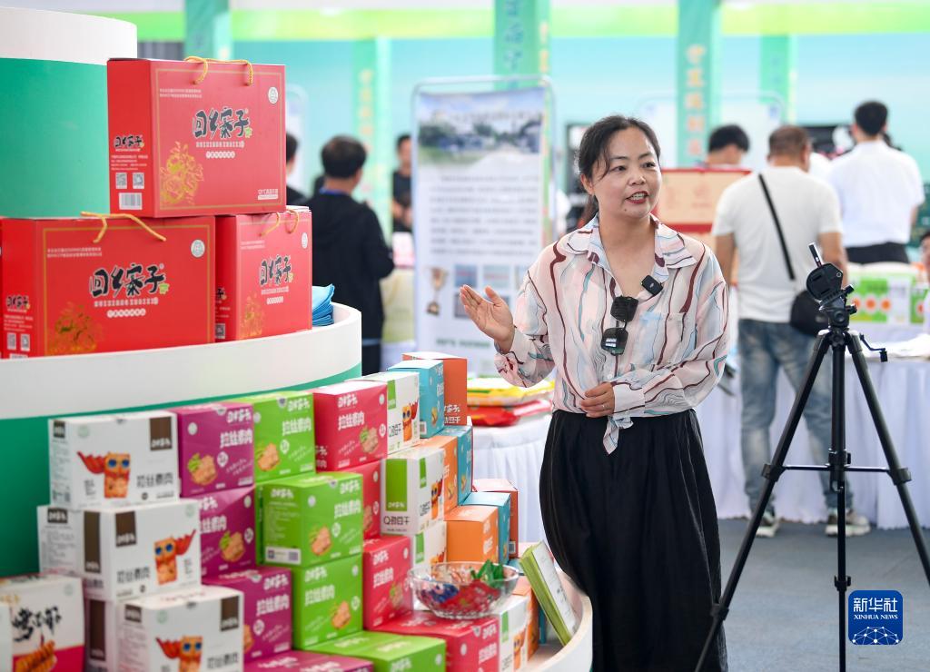 8月12日,一名網絡主播在展銷會上介紹產品。