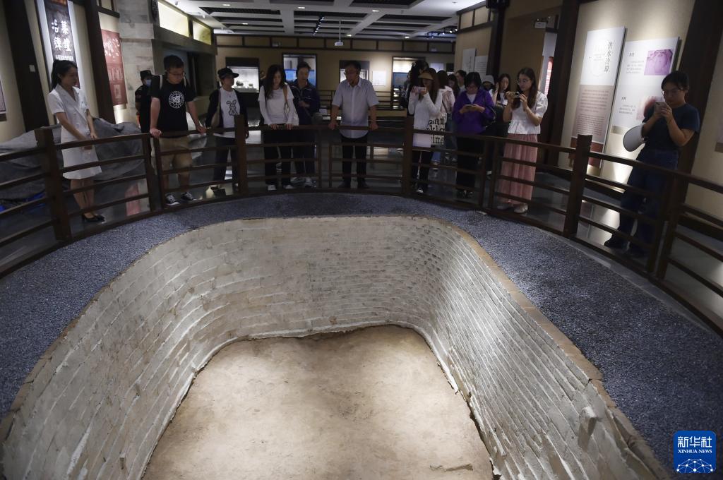 8月8日,參加集中采訪的媒體記者在位于河南省鄭州市的古滎漢代冶鐵遺址博物館參觀采訪。