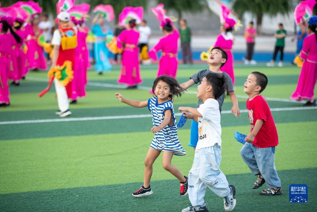 8月9日,小朋友在五常市時代中學集中安置點玩耍。