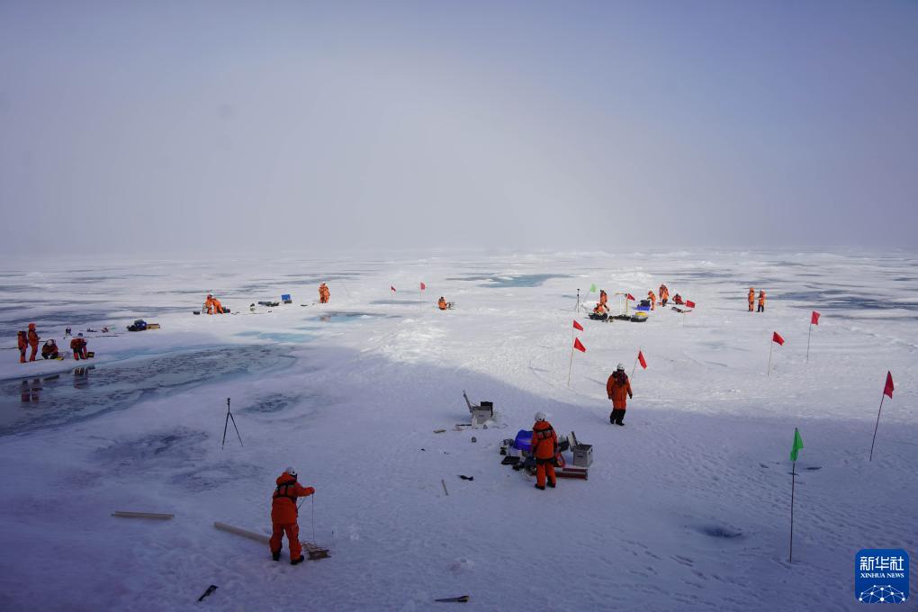 這是8月12日拍攝的首個(gè)海冰綜合調(diào)查作業(yè)站位全景。