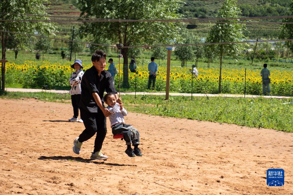 8月12日,游客在寧夏固原市涇源縣大灣鄉(xiāng)楊嶺村玩耍。新華社記者 李旭倫 攝