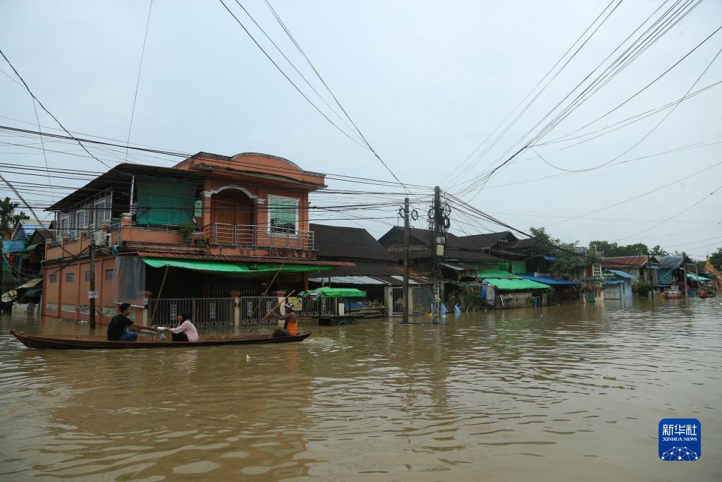 這是8月12日拍攝的緬甸勃固鎮(zhèn)洪災(zāi)區(qū)。新華社發(fā)(苗覺(jué)梭攝)