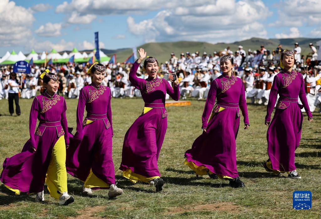 8月18日,在蒙古國泰吉山谷,中國內(nèi)蒙古自治區(qū)二連浩特市烏蘭牧騎應(yīng)邀參加文化節(jié)。