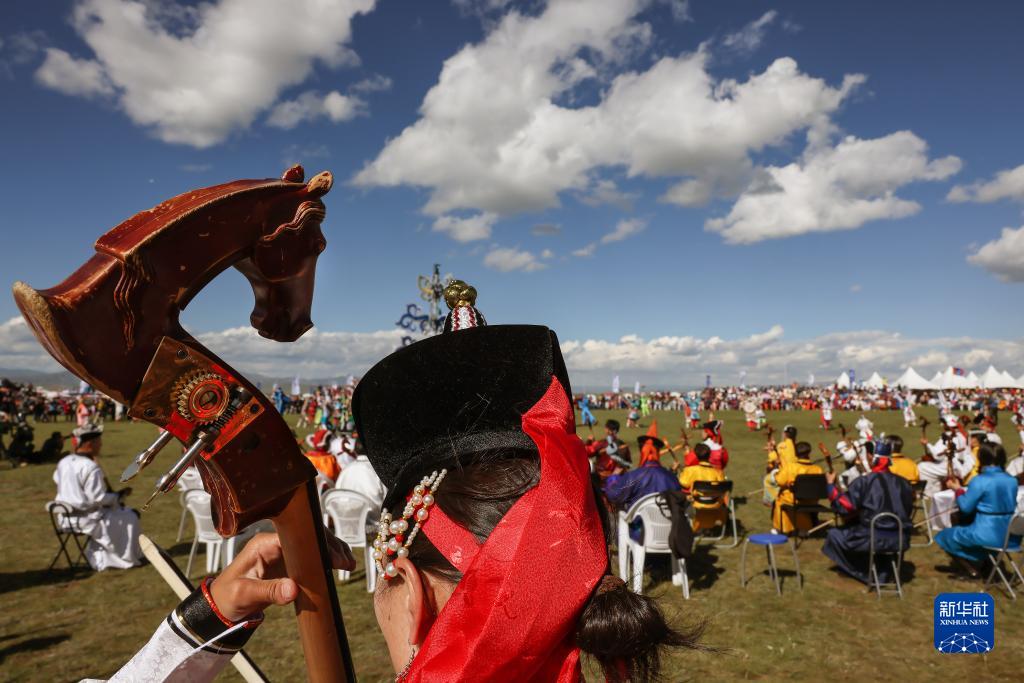 8月18日,在蒙古國泰吉山谷,文化節開幕式上演員在演奏馬頭琴。