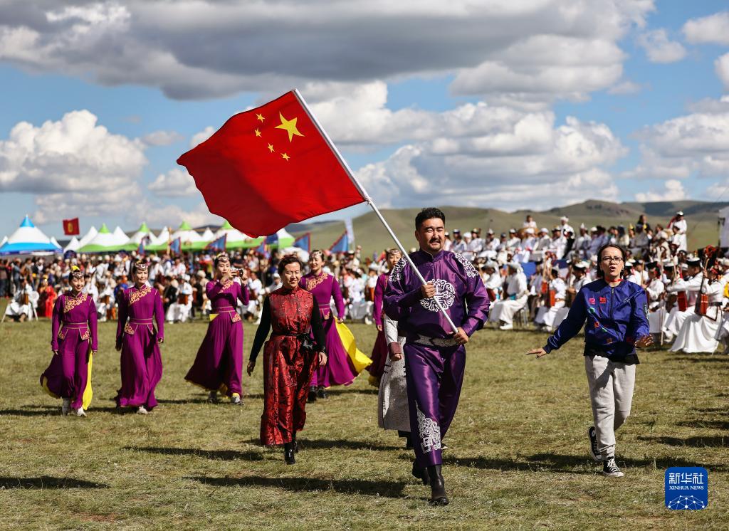 8月18日,在蒙古國泰吉山谷,中國內蒙古自治區二連浩特市烏蘭牧騎應邀參加文化節。