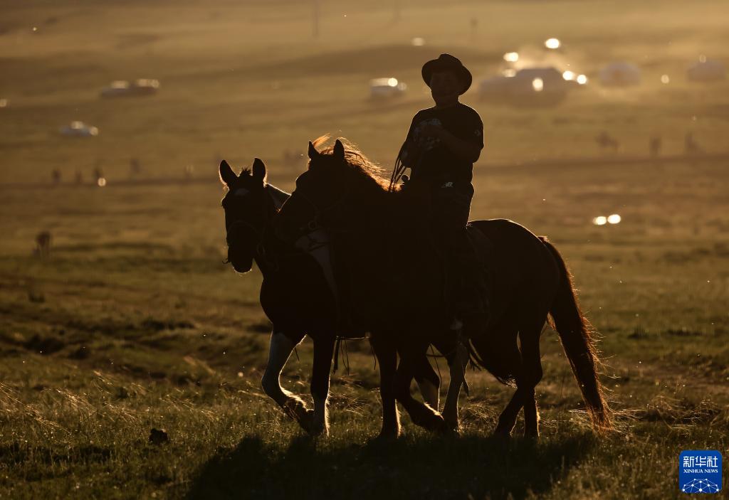 散去了白天的喧囂,距離蒙古國首都烏蘭巴托40多公里的泰吉山谷又恢復了往日的寧靜,夕陽給山谷和牧場披上了金色的盛裝。參加2023年度“游牧民族”世界文化節的人們,有的選擇在此宿營,等待次日繼續參加文化節的各種活動,有的選擇駕車返回烏蘭巴托或附近的牧點。牧人們將放牧的馬匹收攏并帶回家中,不知疲倦的孩子們繼續在夕陽中嬉戲打鬧。