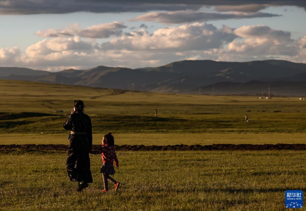 這是8月18日在蒙古國泰吉山谷拍攝的回家的母女。