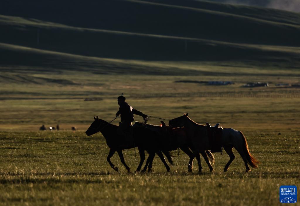 8月18日,在蒙古國泰吉山谷,牧人將自己的馬匹收攏。