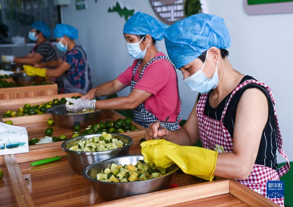 8月20日,在浙江省建德市三都鎮(zhèn)松口村的小青柑共富工坊,工人忙著開果、挖果。