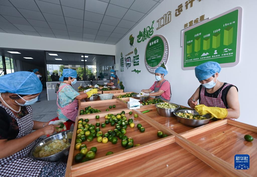 8月20日,在浙江省建德市三都鎮松口村的小青柑共富工坊,工人忙著開果、挖果。