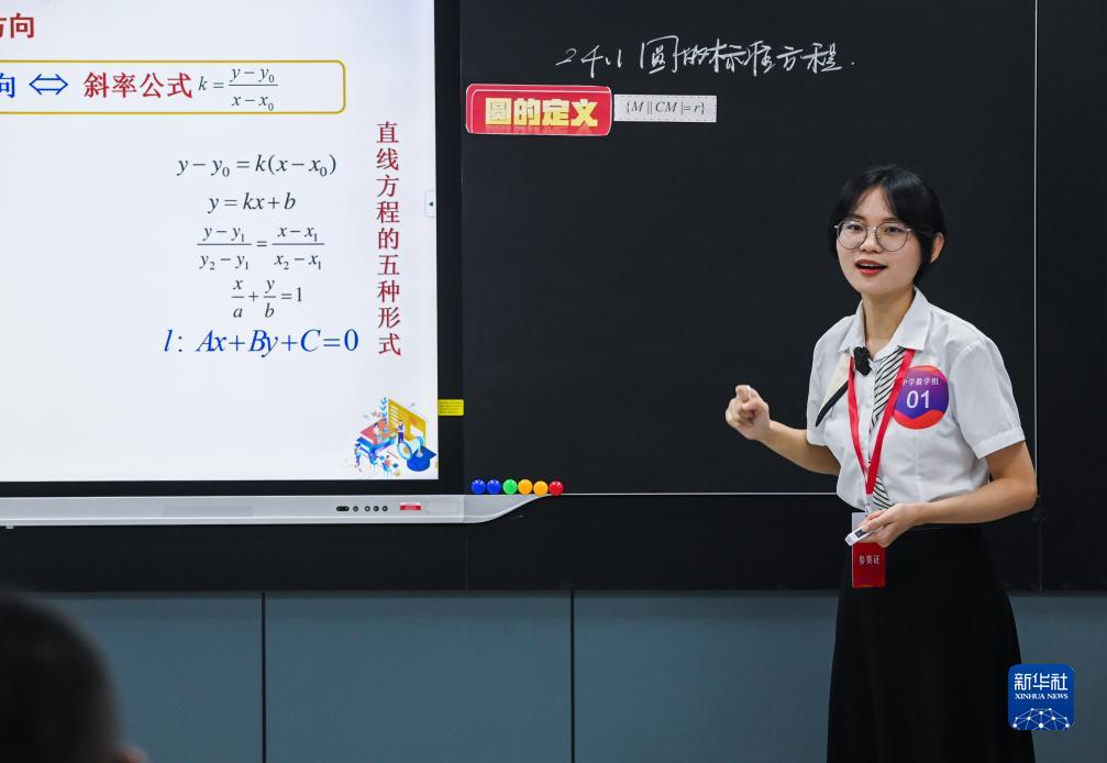 8月22日,中學數學組的一名教師在進行教學展示。
