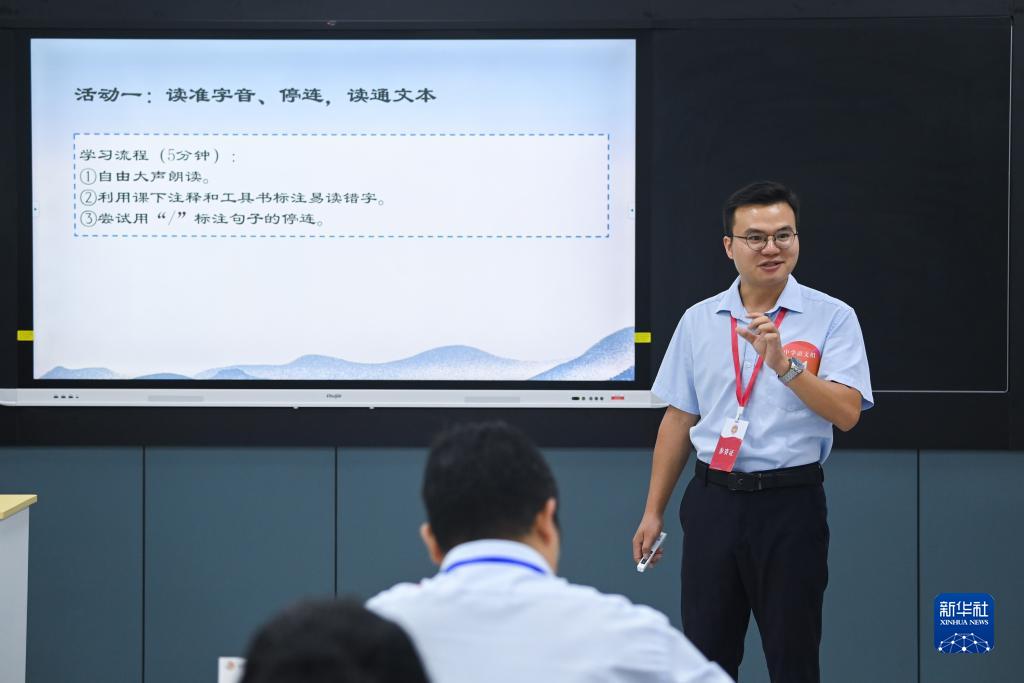 8月22日,中學語文組的一名教師在進行教學展示。