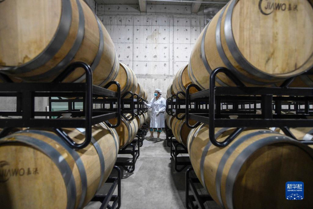 8月22日,在承德縣一家蘋果酒生產(chǎn)企業(yè),工人在存儲車間查看酒桶密封情況。