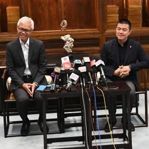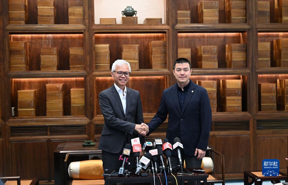 8月22日,故宮博物院常務(wù)副院長婁瑋(右)、香港故宮文化博物館館長吳志華在北京故宮博物院接受采訪。