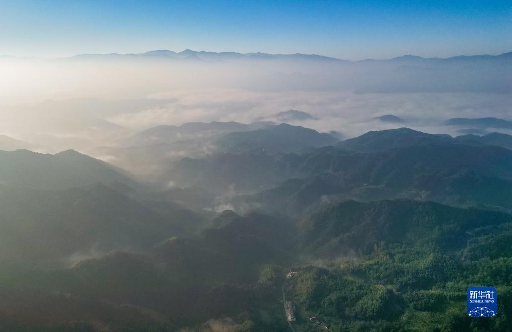 當日早晨,地處大別山區腹地的安徽省六安市霍山縣漫水河鎮,出現云海盛景,美不勝收。