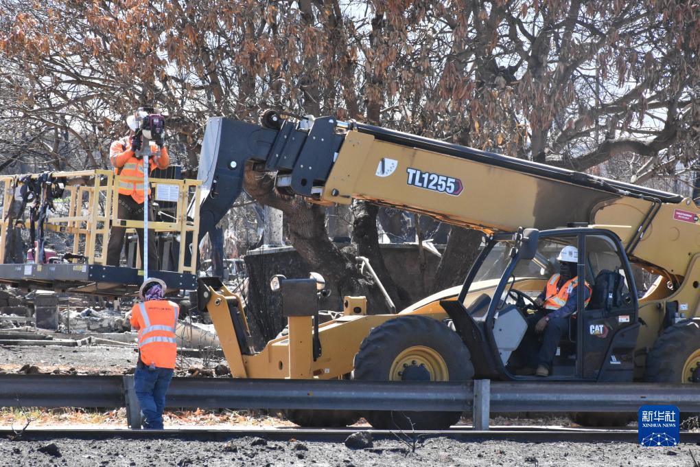 8月22日,工作人員在美國夏威夷州拉海納鎮進行修復工作。