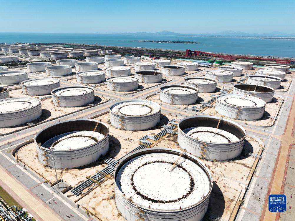 這是8月23日拍攝的山東港口青島港董家口原油商業儲備庫(無人機照片)。