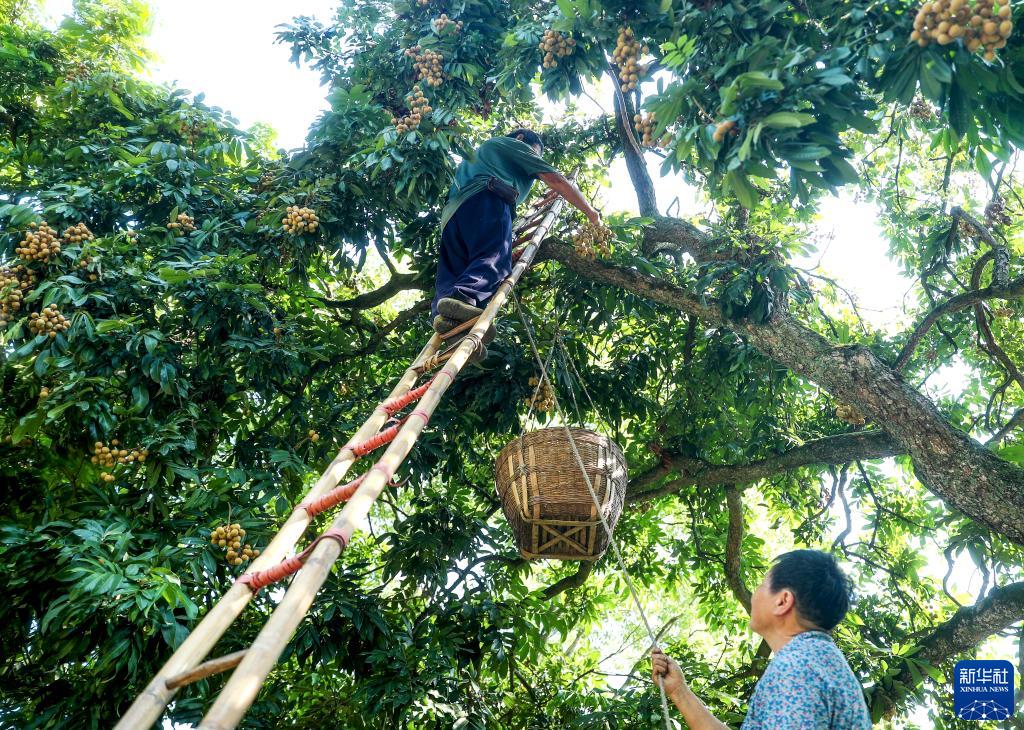近日,四川省瀘州市的村民開始忙著采收桂圓。近年來,該市從福建等地引進優良品種進行品種結構調整,并探索“公司+專合社+農戶”模式發展桂圓產業,促進農民增收致富。據當地農業部門統計,目前該市桂圓種植面積達30萬畝,今年預計產量10萬噸。