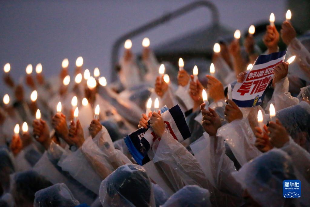 8月23日,在韓國首爾的國會議事堂前,韓國最大在野黨共同民主黨舉行集會抗議日本政府決定啟動核污染水排海。