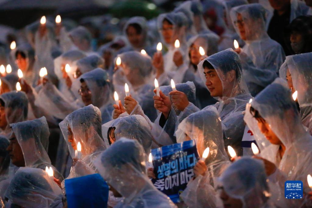 8月23日,在韓國首爾的國會議事堂前,韓國最大在野黨共同民主黨舉行集會抗議日本政府決定啟動核污染水排海。
