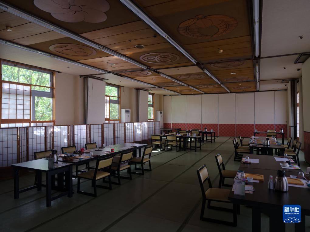 這是8月23日在日本福島縣磐城市拍攝的一家酒店空曠的餐廳。