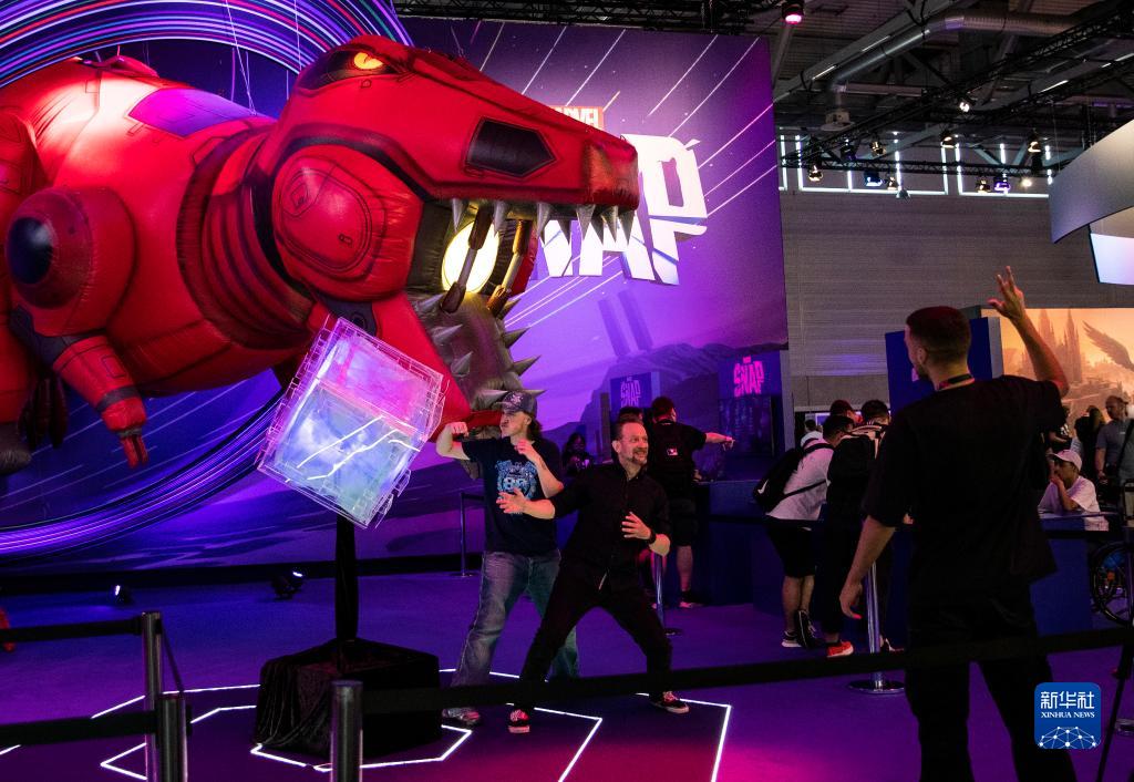 8月23日,人們在德國科隆舉辦的科隆國際游戲展上合影。新華社記者 張帆 攝