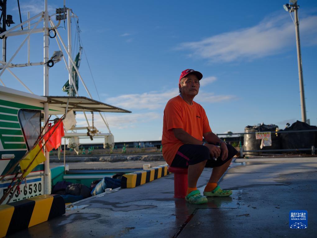 8月23日,打漁歸來的小野春雄坐在日本福島縣新地町的漁港。