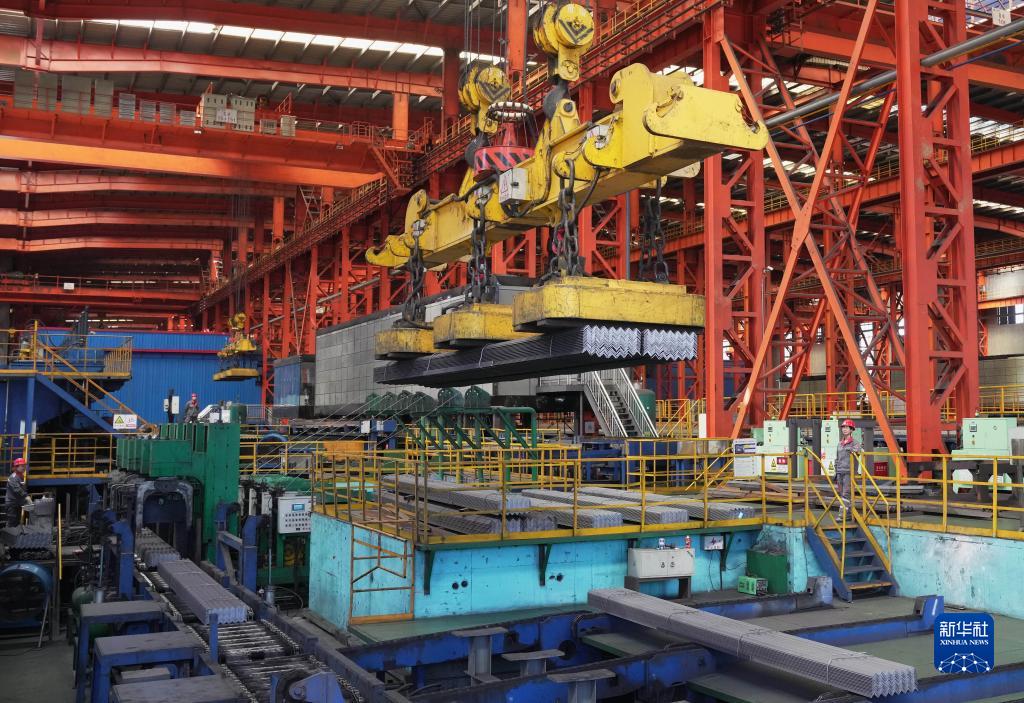 8月23日,唐山市豐潤(rùn)區(qū)一家鋼鐵企業(yè)的工人在角鋼生產(chǎn)線上工作。