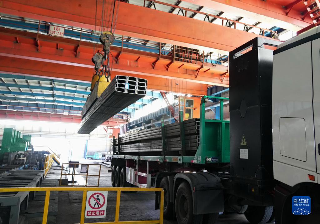 8月23日,唐山市豐潤區一家鋼鐵企業的工人在操作電磁調運設備吊裝槽型鋼。