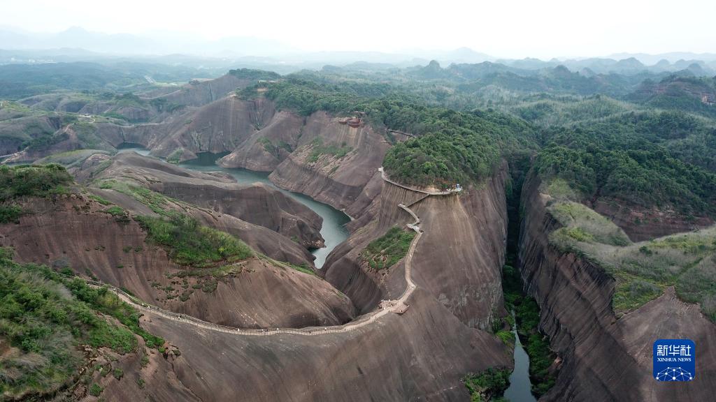 今年暑期,位于湖南省郴州市蘇仙區的高椅嶺景區迎來大量游客。高椅嶺有著罕見的丹霞地貌景觀,山頭渾圓四壁陡峭,碧水環繞風景絢麗。