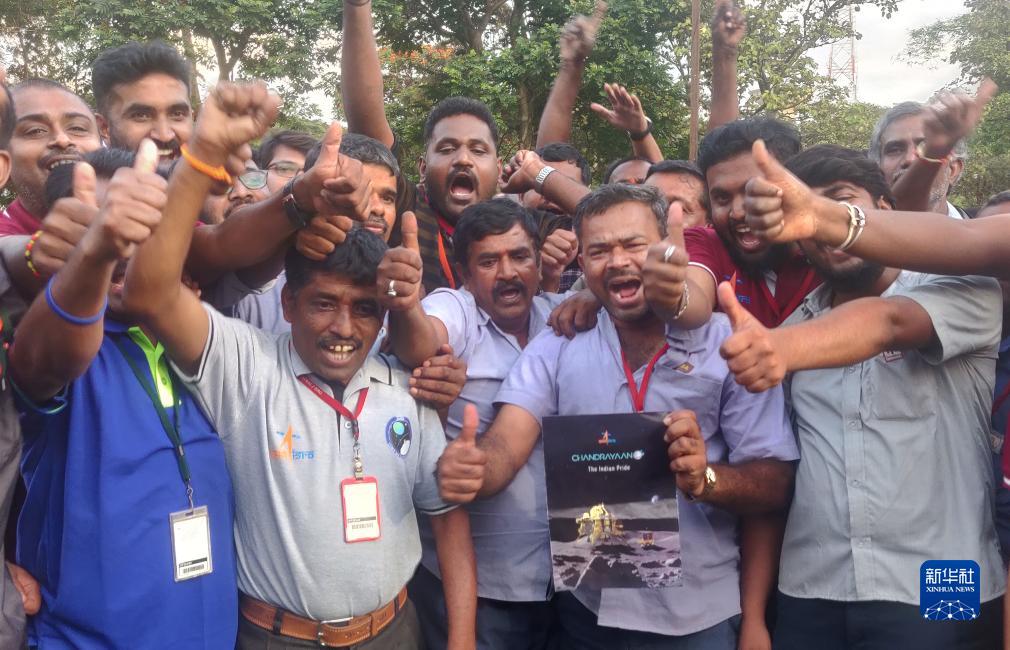 8月23日,在印度班加羅爾,印度空間研究組織的工作人員慶祝印度月球探測器在月球南極成功著陸。