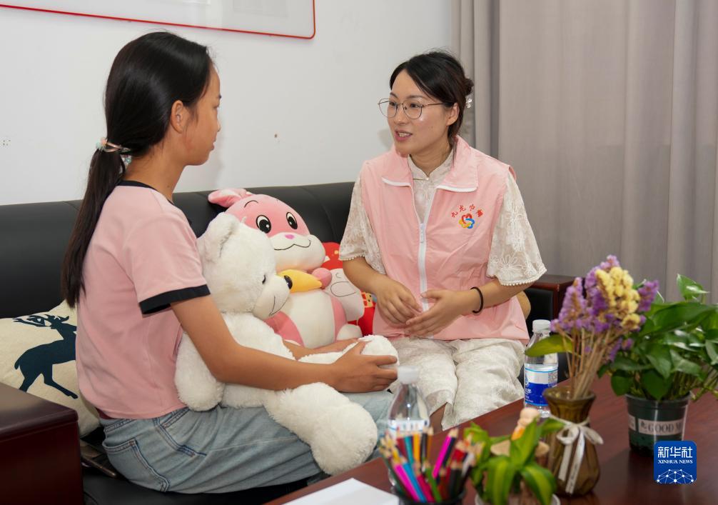 8月24日,在重慶市九龍坡區新民村村委會的一間活動室內,“陽光護航”九龍巾幗志愿者小分隊的心理咨詢師志愿者在為孩子們提供“一對一”心理輔導。新華社記者 劉潺 攝